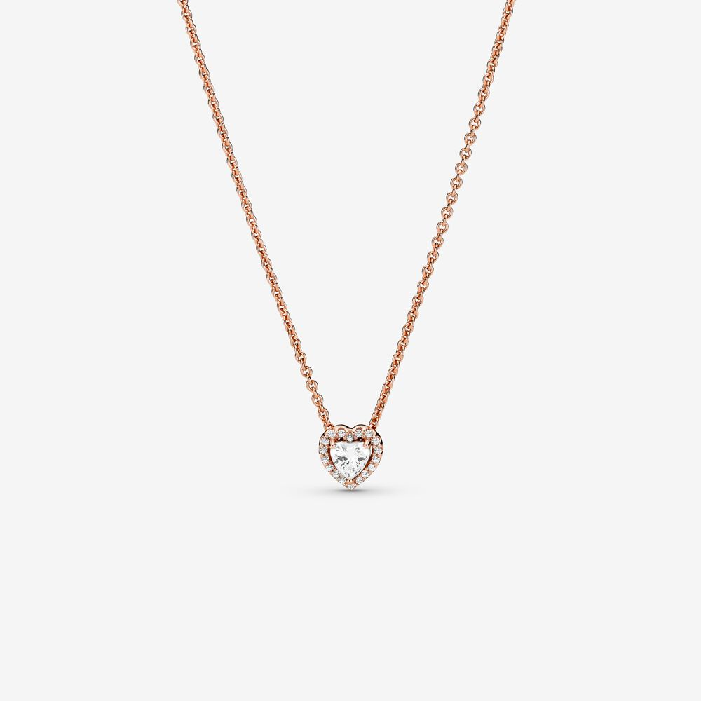 Make a statement with the Sparkling Heart Collier Necklace. Hand-finished in 14k rose gold plating, this necklace is inspired by classic design elements from the Pandora Timeless collection. Featuring a raised heart-shaped central stone surrounded by a halo of clear cubic zirconia, a Pandora crown O monogram logo tag is attached by the clasp. Adjust the necklace length to suit your style and wear with other heart-shaped pieces for a look filled with love.