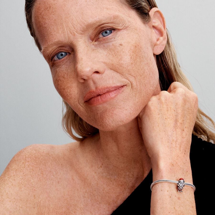 Our Santa charm makes the season merry and bright, crafted in sterling silver with glittery enamel details. His body can even move from side to side for an extra jolly effect.