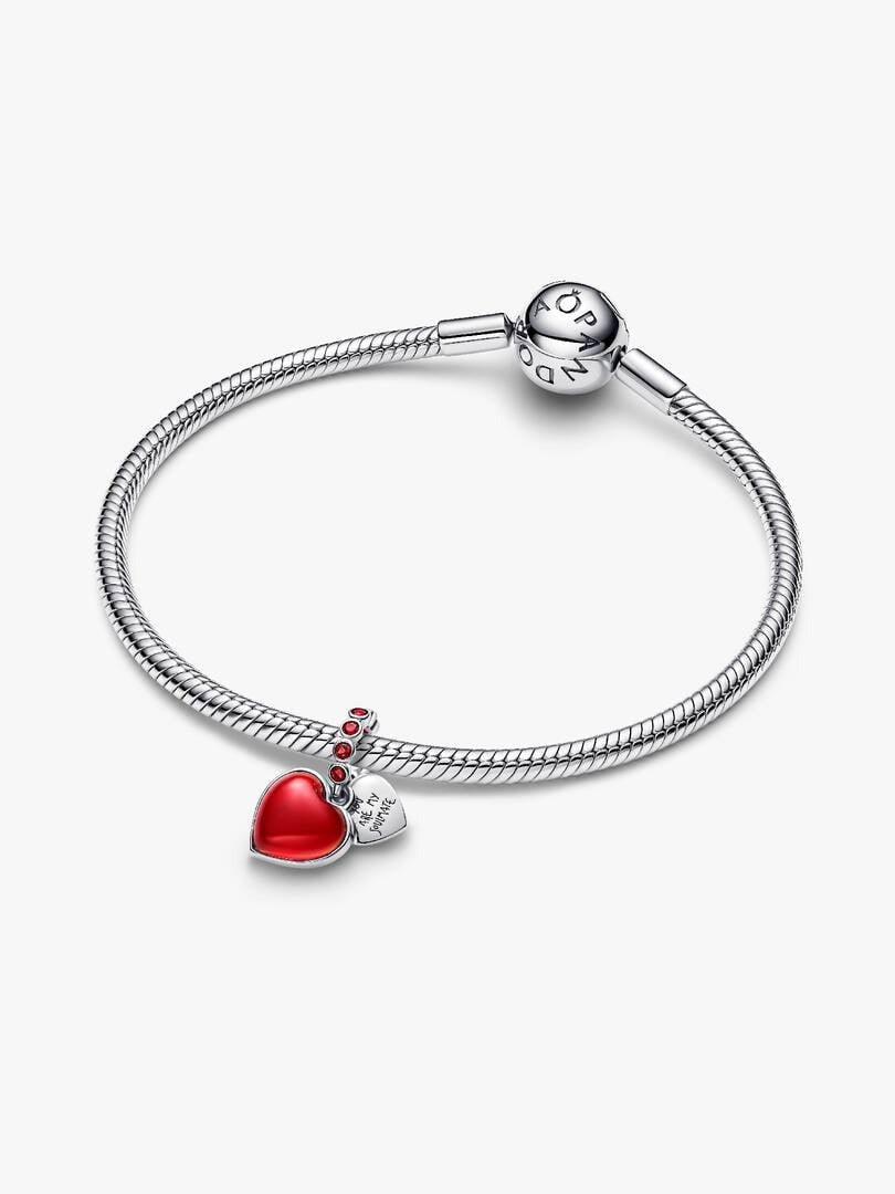 Speak from the heart. This sterling silver double dangle pairs rich red Murano glass with salsa red crystals and a “YOU ARE MY SOULMATE” engraving, celebrating deep love and connection.