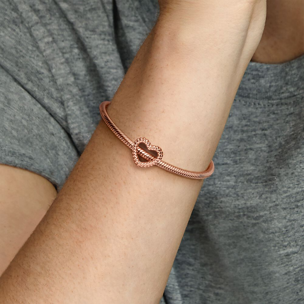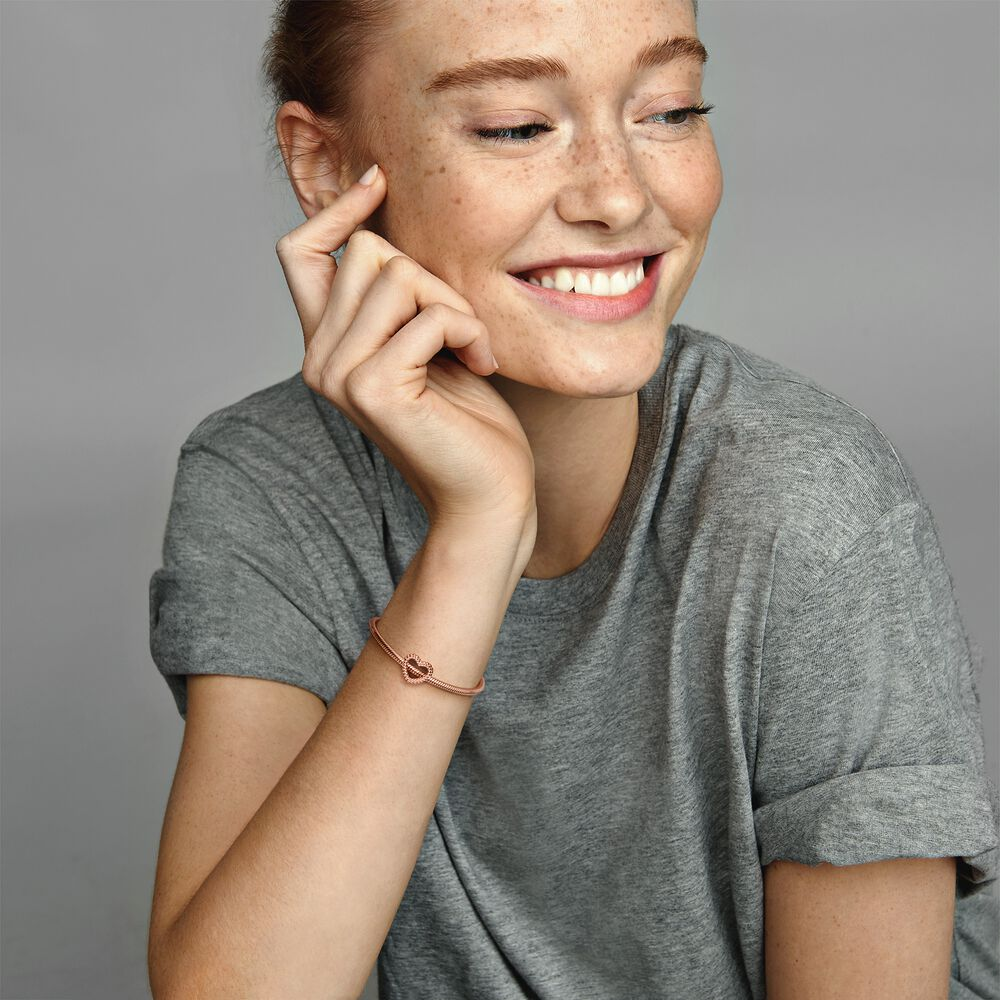 Feel the love with our 14k rose gold-plated Beaded Open Heart Charm, perfect for adding depth and dimension to a charm bracelet. The open design is minimally detailed with a beaded silhouette. Thread it on a favourite Pandora Moments bracelet or bangle, adding other pieces that tell your story in a way that's uniquely you.