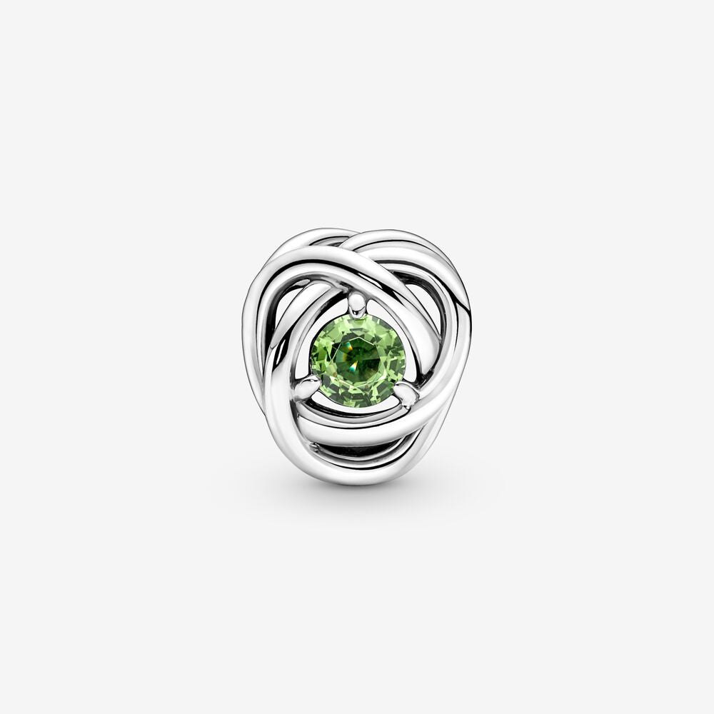 Add a pop of colour to your bracelets and pendants with this Spring Green Eternity Circle Charm. This special piece is made in the shape of an infinity braid and is set with a vibrant green crystal at its centre. Symbolising eternity, add this bright charm to your styling to give your everyday jewellery a special update.