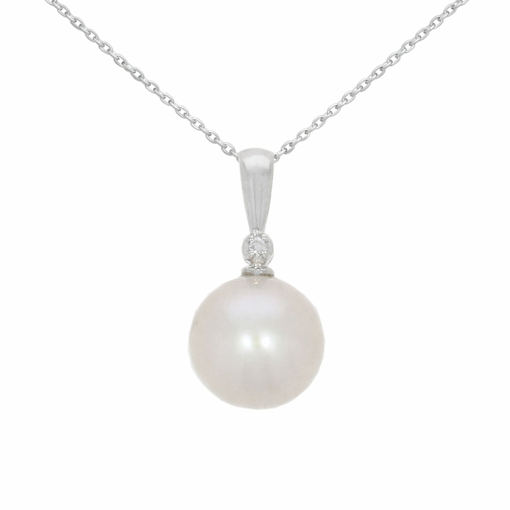 9ct White Gold Freshwater Cultured Pearl & 0.04ct Diamond Pendant