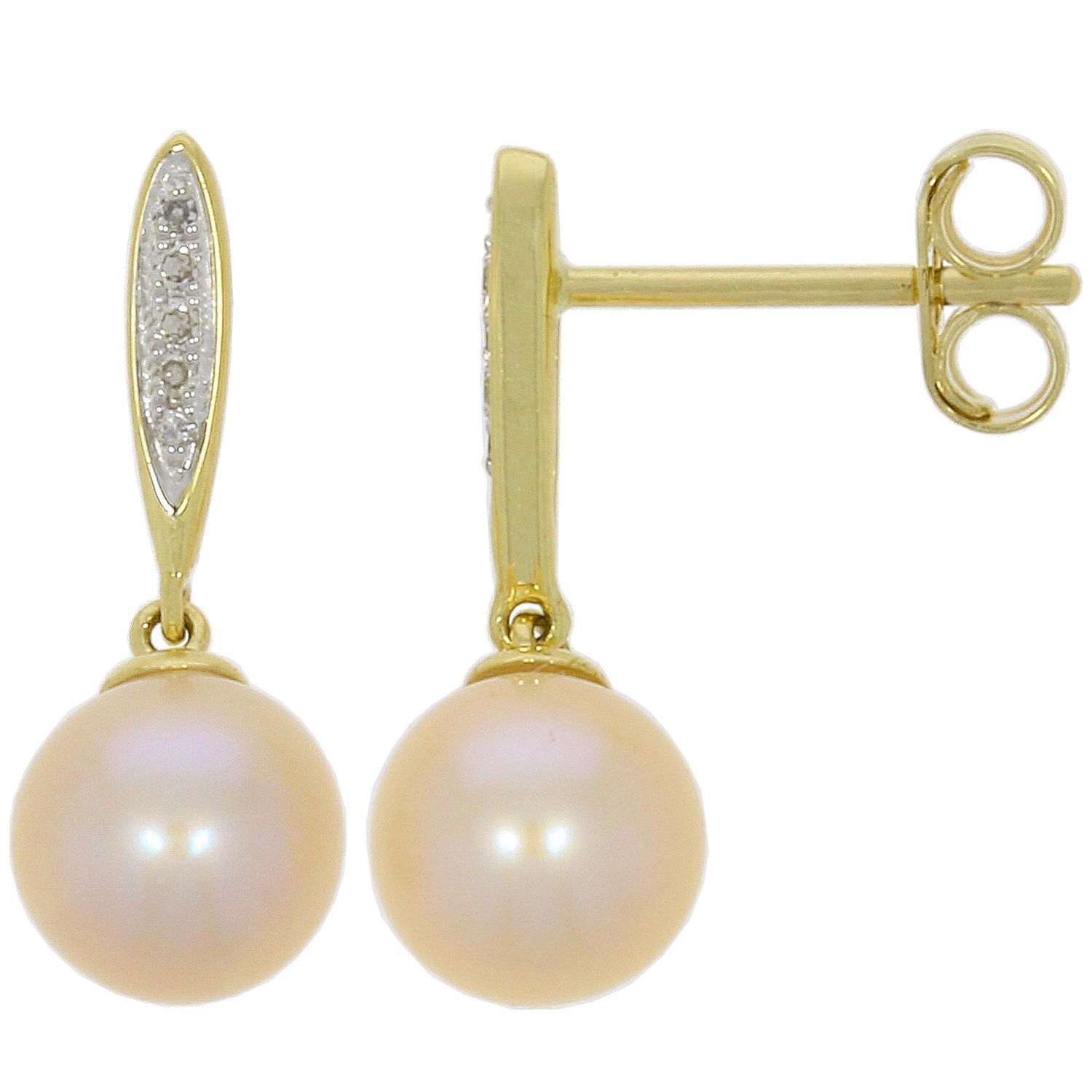 9ct Yellow Gold Freshwater Cultured Pearl & 0.04ct Diamond Drop Earrings