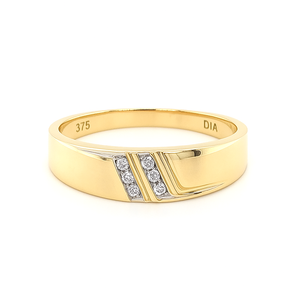 Set in 9ct yellow gold we have this classic diamond gents ring with a crossover of diamonds.