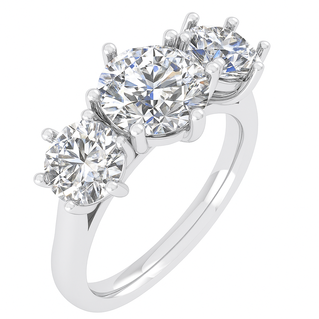 Platinum 3.32ct Lab Grown Round Brilliant Cut Trilogy Diamond Ring