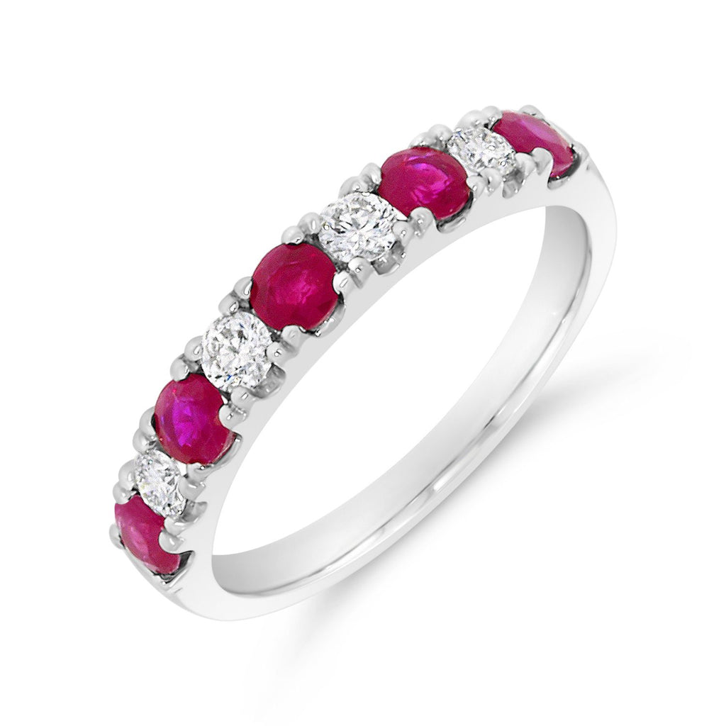 9ct White Gold Claw Set Ruby & 0.10ct Diamond Eternity Ring N