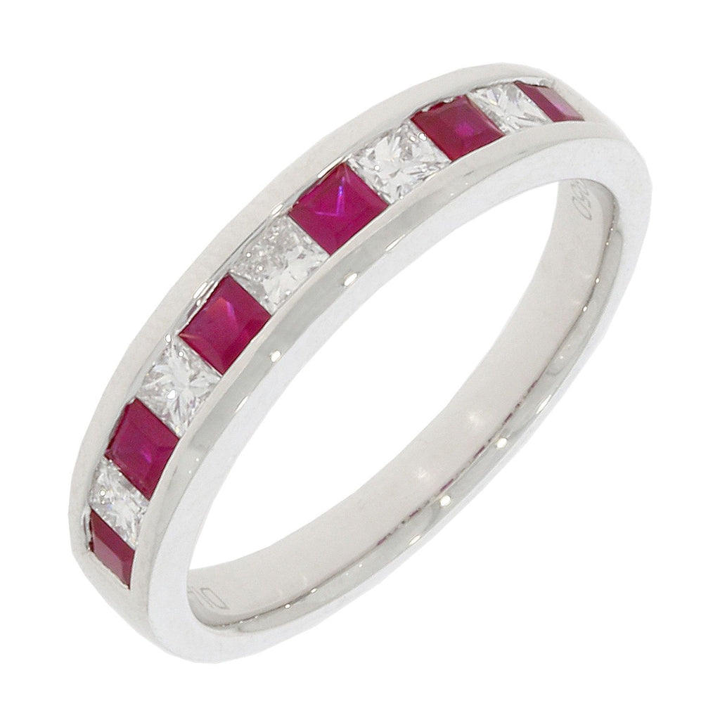 Platinum Princess Cut Ruby & 0.35ct Diamond Eternity Ring N
