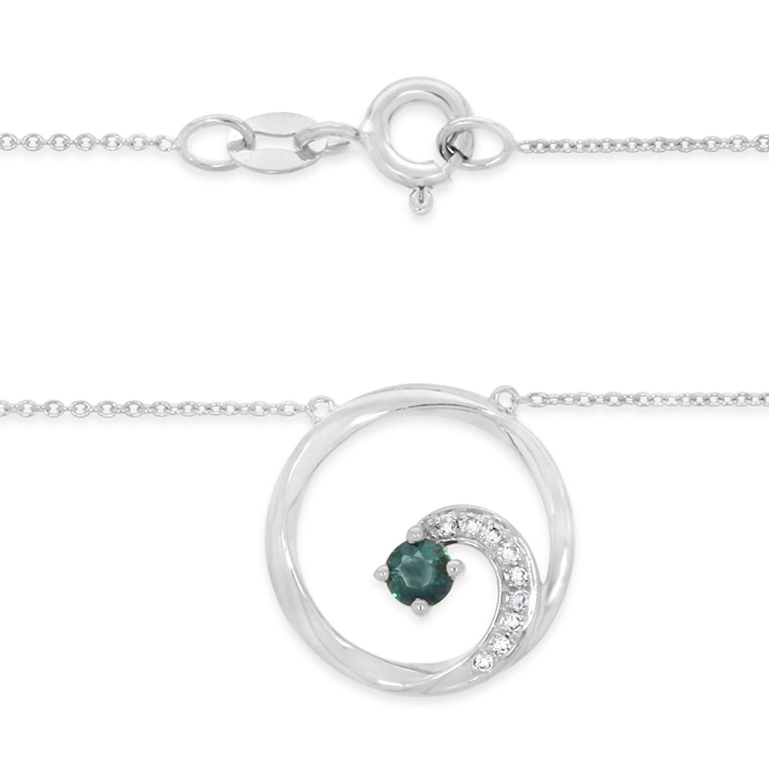 9ct White Gold Sapphire & 0.03ct Diamond Wave Necklace