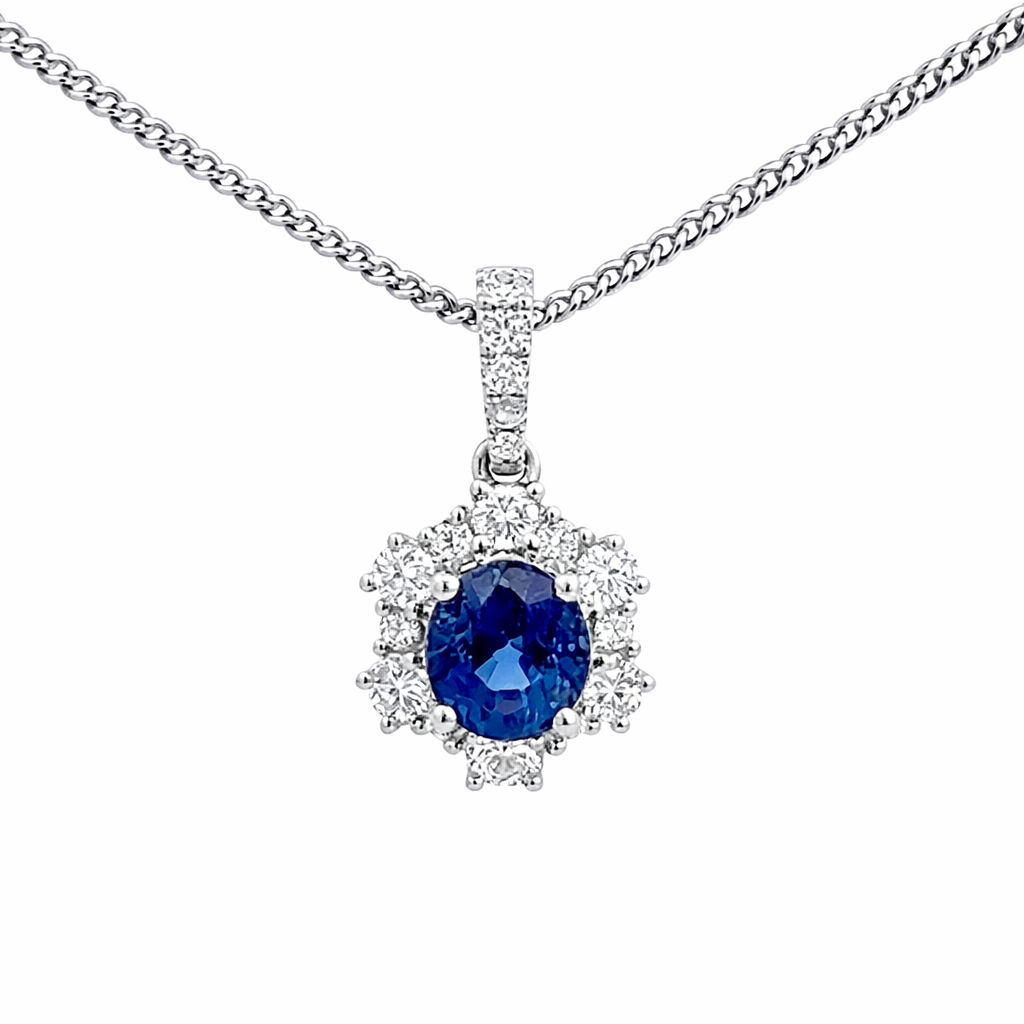 18ct White Gold 0.84ct Sapphire & 0.34ct Diamond Pendant