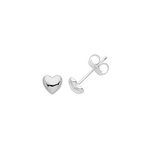 These simple lightweight stud earrings have raised heart shaped fronts. Secured with post and scroll closure.