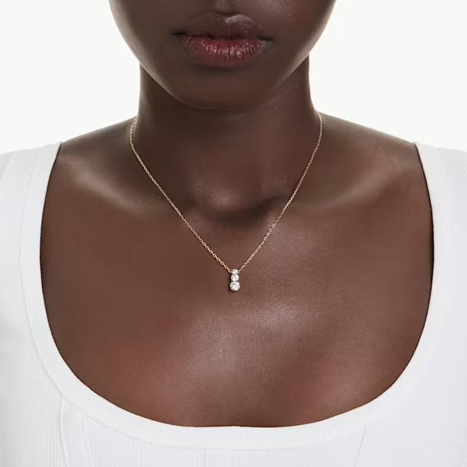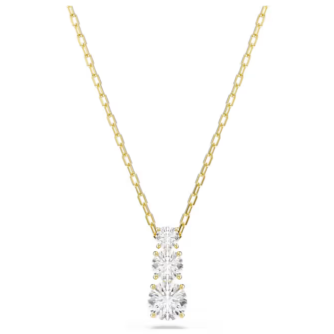 Inspired by the concept of eternal love, this romantic pendant is timelessly elegant. The trio of clear Swarovski Zirconia are majestically suspended from a gold-tone plated chain, creating a piece of jewellery that is full of emotion.