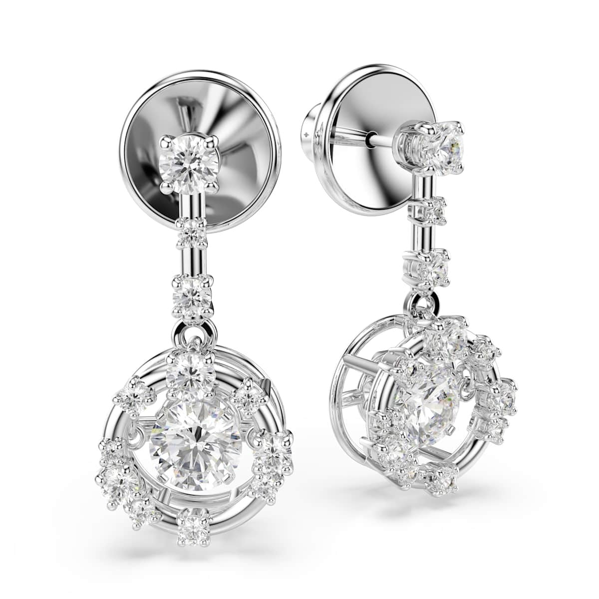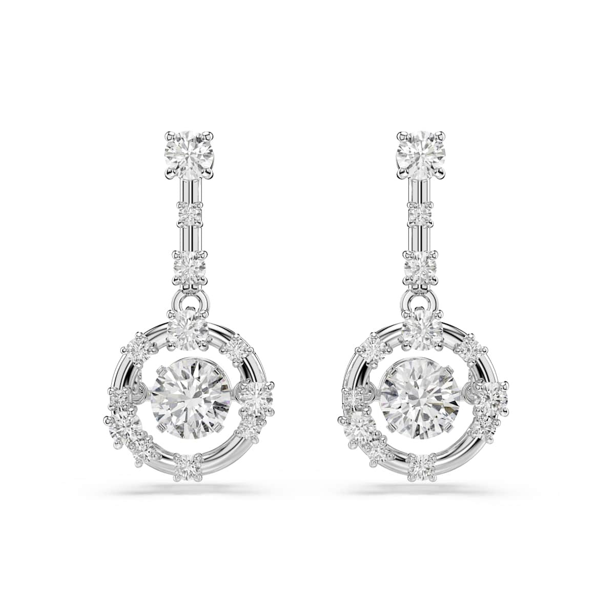 Crafted for maximum radiance, these star-inspired earrings will make any outfit shine bright. Each rhodium plated piece features a dancing stone at the center, which produces endless reflections, while smaller Swarovski Zirconia are positioned around the metallic frames and bars. Wear them with the matching bangle or pendant to launch your style into the cosmos.