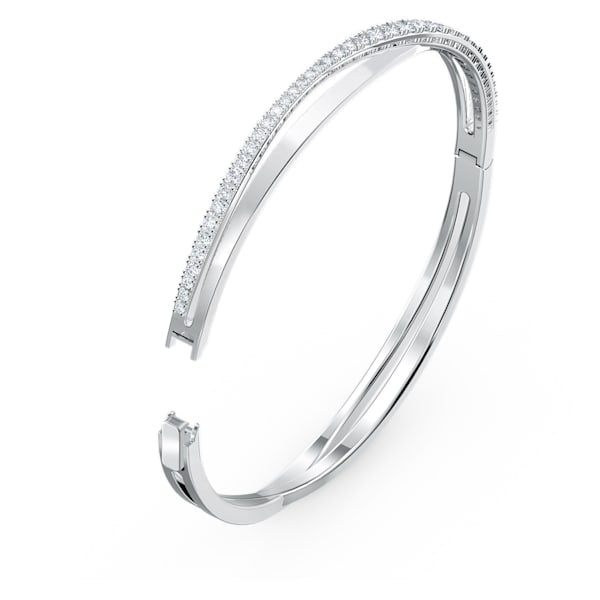This beautiful bangle by Swarovski exhibits timeless, understated elegance in a modern interpretation of the spiral trend. A brilliant line of sparkling white stones follows the gently curving lines of the bangle, adding glittering radiance to the design. On-trend and refined, this bangle complements your everyday looks with a brilliant touch.
