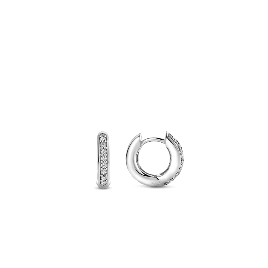 These TI SENTO silver small hoops 7811ZI adorned with a dazzling pave of tiny cubic zirconia, these exquisite earrings are designed to add a touch of elegance and sparkle to any outfit, whether you're dressing up for a special occasion or simply elevating your everyday look. Crafted from premium 925 sterling silver, these hoops are coated with platinum to protect them from daily wear and keep them luminous. They boast a diameter of 12mm which makes them the perfect luxury basic to add to your earring collection. Make an understated statement with these eye-catching pieces, wear them on their own or combine them with other earrings to create your own unique Ear Party. Like all our jewellery, these hoops are nickel-free and hypoallergenic, ensuring not just style, but also comfort and quality.