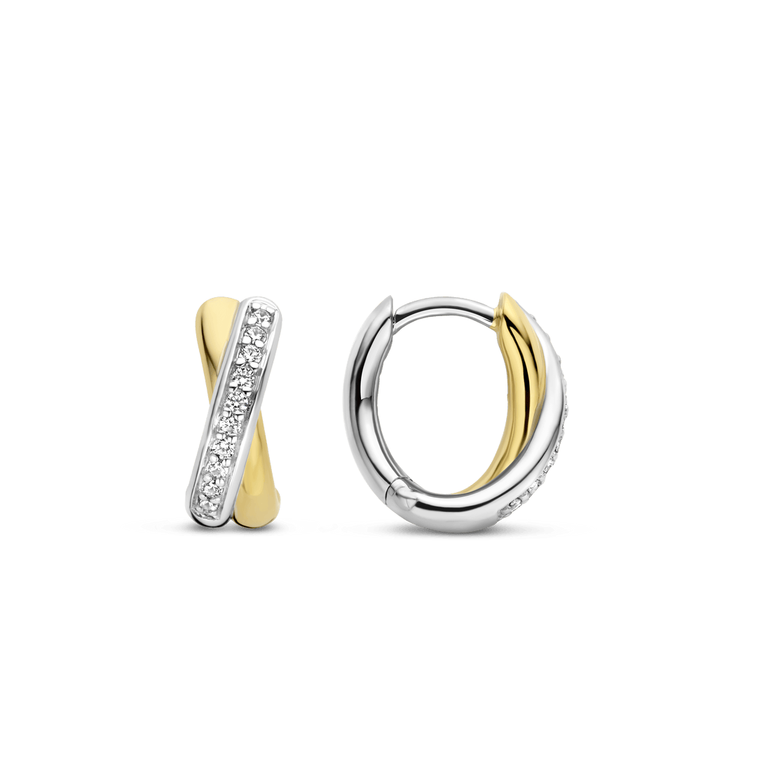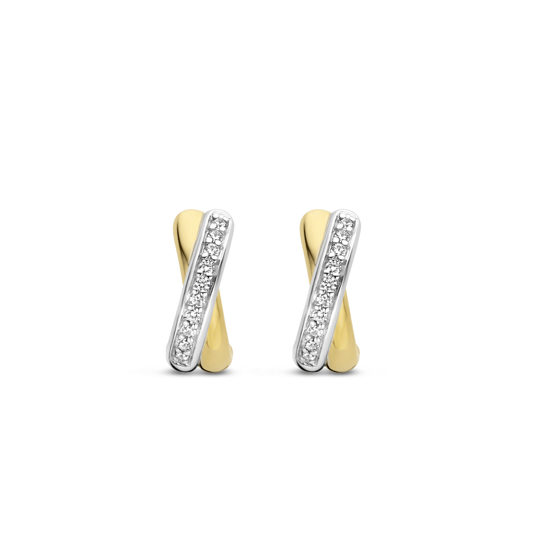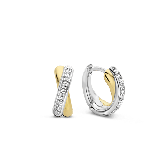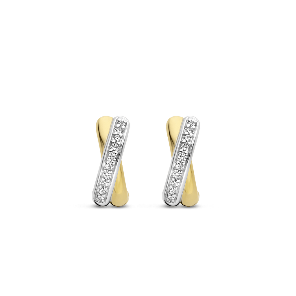 These TI SENTO gold-plated silver earrings 7667ZY flaunt two refined circles, one is gold-plated and the other has a pavé of handset white cubic zirconia (CZ) stones. The earrings are crafted from 925 sterling silver and plated with yellow gold.