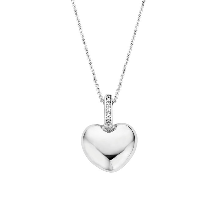 TI SENTO SILVER PUFFY HEART CZ BALE NECKLACE