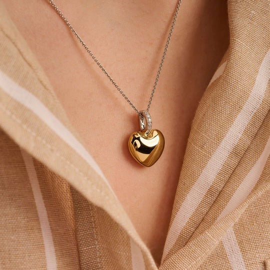 Yellow Gold Plated Two Tone Heart Pendant Necklace