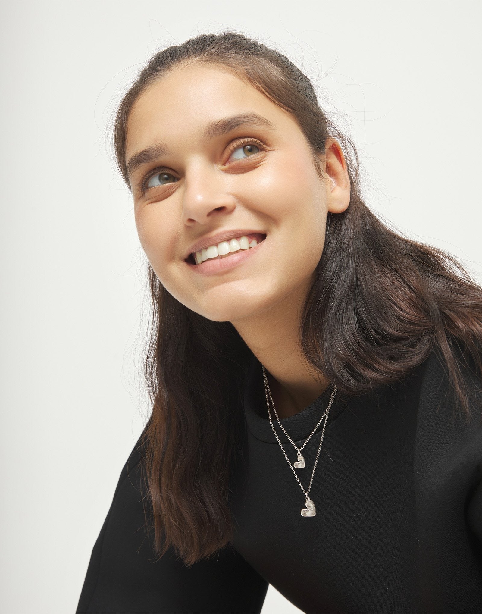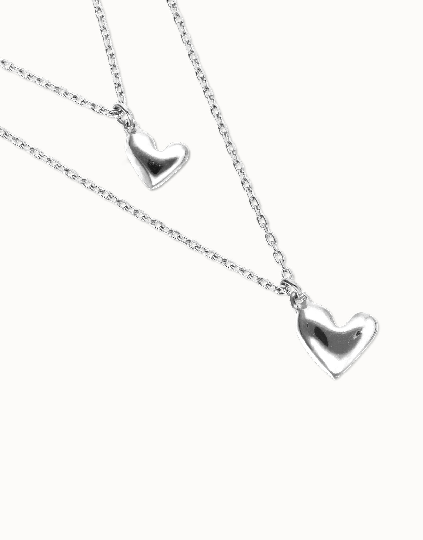 Double necklace with two hearts.When something inside you beats strongly, there is only one way to listen to it: let go. The Beat Collection is a celebration of letting go of the reins and letting your heart lead the way. A handmade heart, imperfect, but real. Because the result of living this way is a heart sculpted with your own hands.
