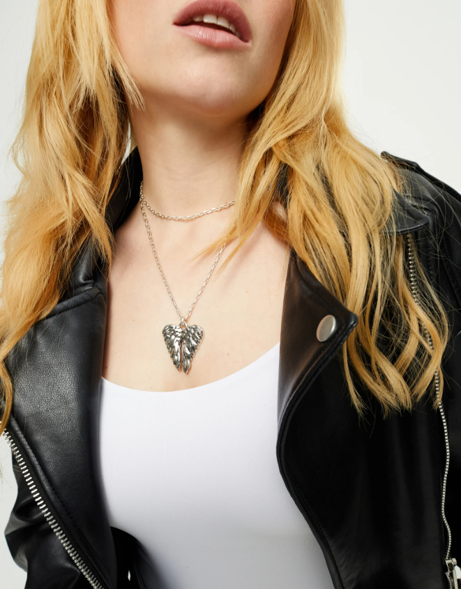 This necklace features an elegant design with a long chain and a wing-shaped pendant, finished in sterling silver. A symbol of freedom, resilience, and personal power that moves with you toward your dreams. Part of the Ser Invencible collection—an ode to those who dare to fly high, even when the road gets tough. With your purchase, you support the My Princess RETT Association, helping girls with this rare disease keep spreading their wings.A purposeful piece, as strong and luminous as you.