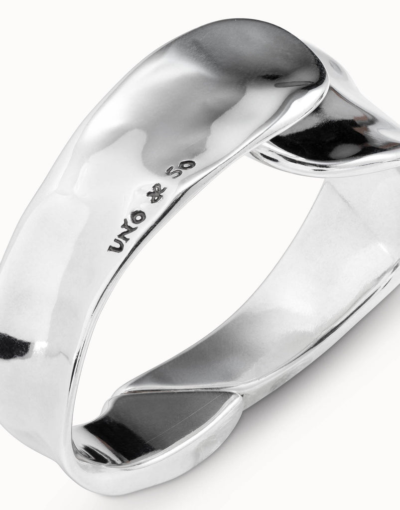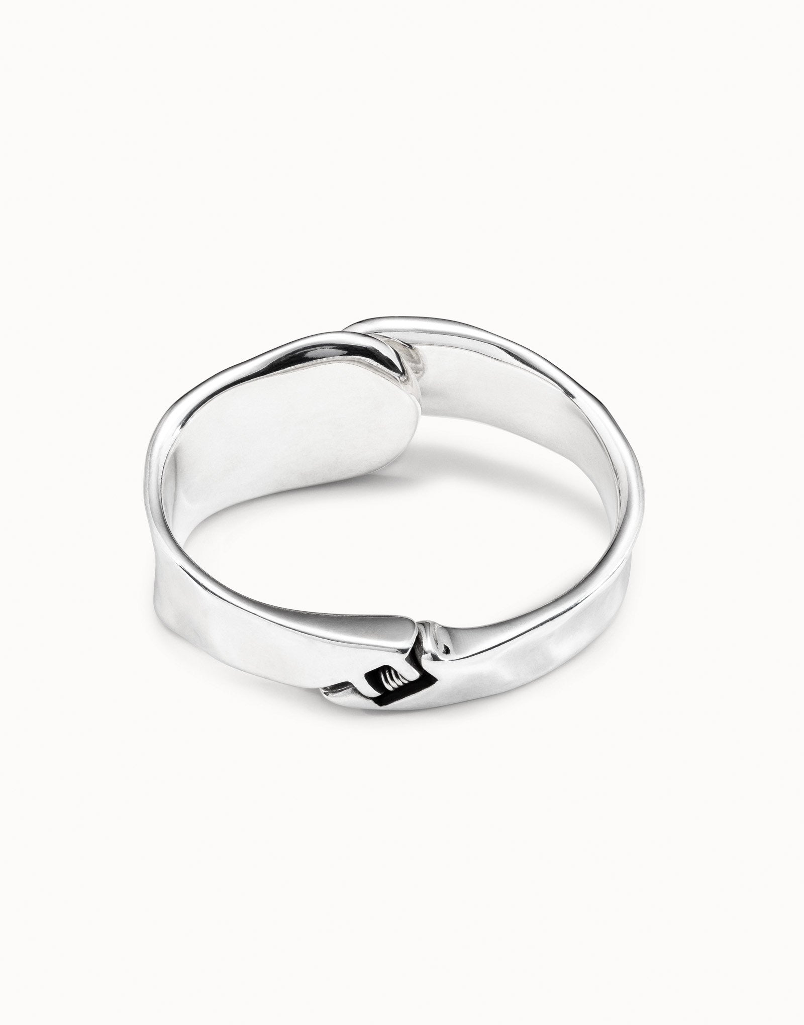 Rigid silver-plated bracelet with an original shape of overlapping waves. A jewel inspired by the great ships that embarked on long voyages searching treasures. A jewel for a trendy woman who likes fashion, and can be worn at any time. A design by UNOde50 handmade in Spain. Size Large.