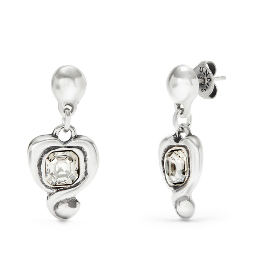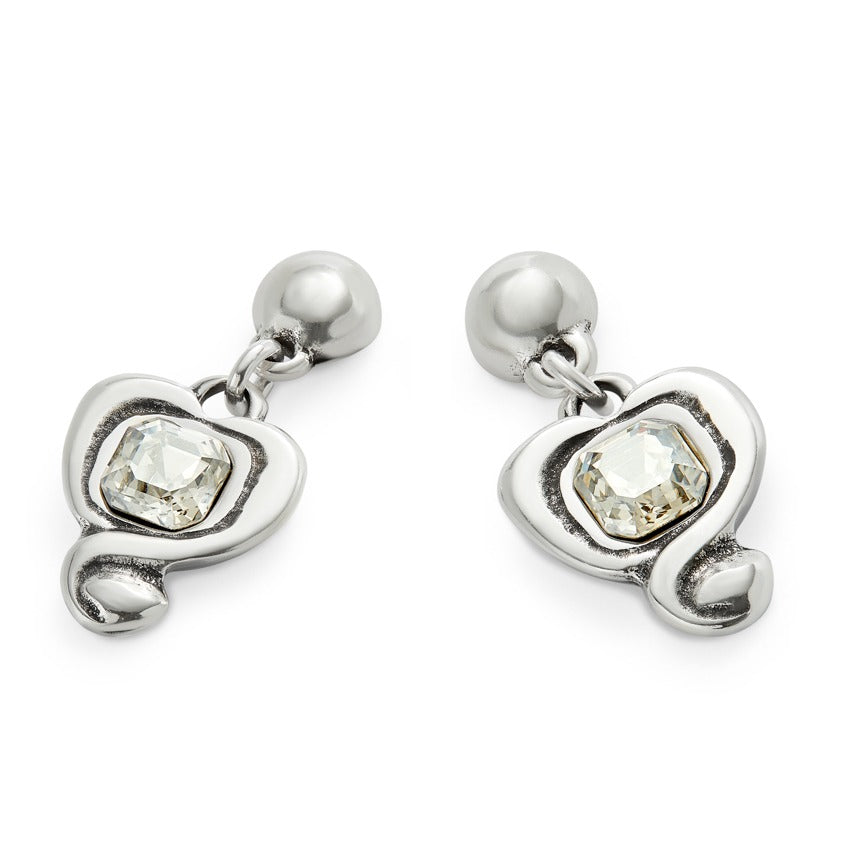 Ser Expresiva Silver Plated Clear Crystal Heart Drop Earrings