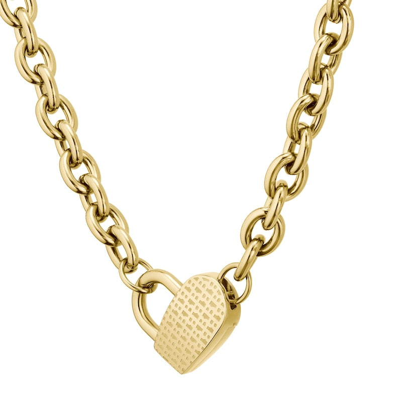 Dinya Gold Tone Monogram Lock Heart Chain Necklace
