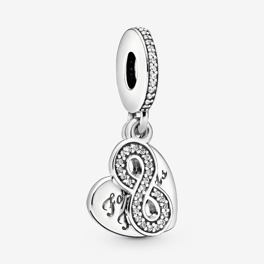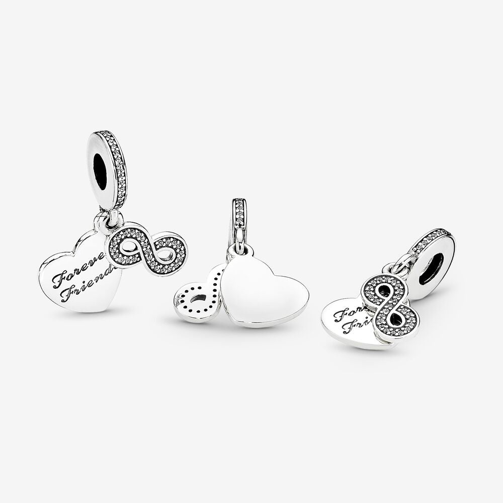 Honour the eternal bond shared between best friends with this hand-finished pendant charm by PANDORA, crafted from sterling silver. The sweet heart, "Forever Friends" engraving and sparkling infinity sign make this design a perfect friendship gift.