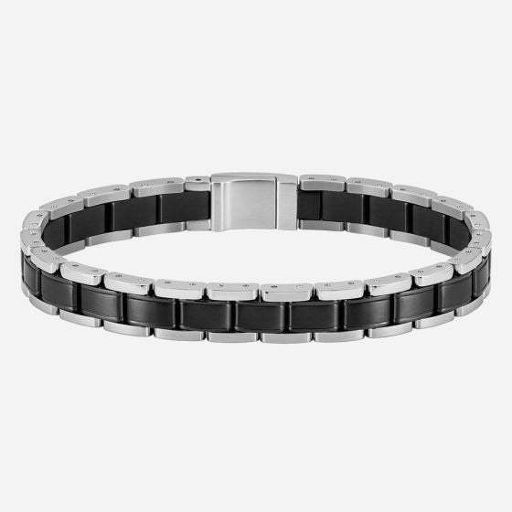 This BOSS Menswear cuff is designed to go with all your everyday looks. Crafted in silver-tone and black-plated steel. Secure logo-engraved clasp.