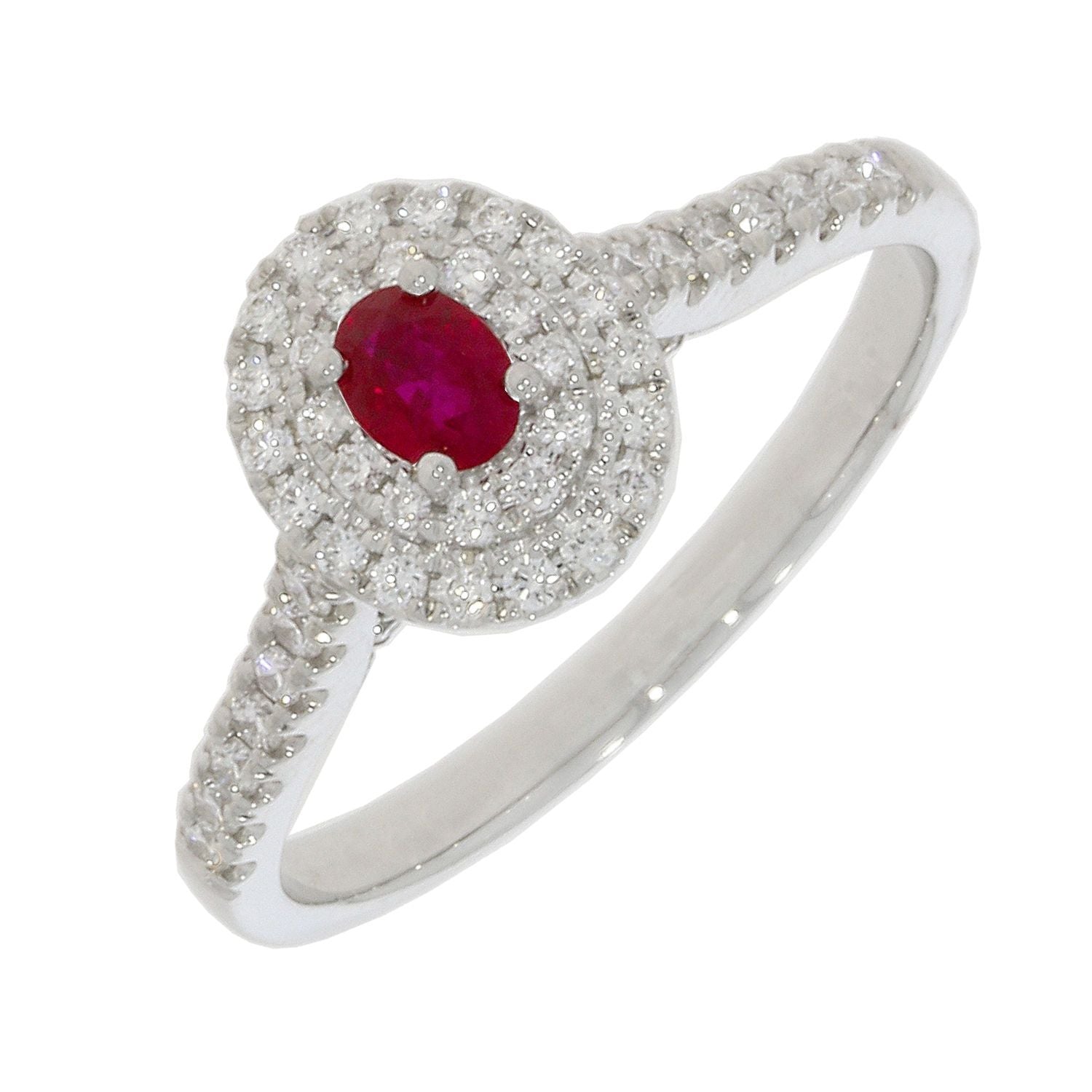 18ct White Gold Oval Cut Ruby & 0.35ct Diamond Halo Ring O