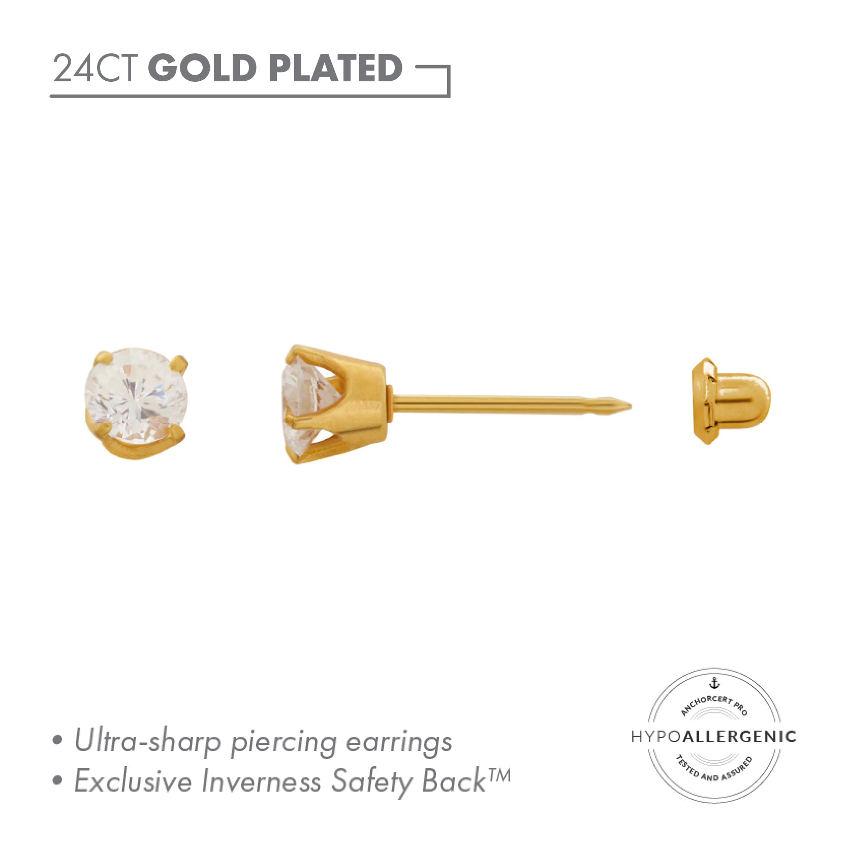 24ct Yellow Gold Plated 5mm Cubic Zirconia Stud Earrings