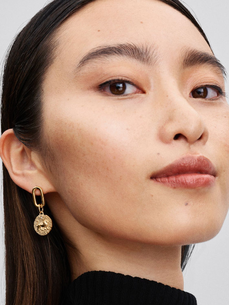 Bold by nature. Brave by choice. This 14k gold-plated medallion features a vintage-inspired lion motif on the front and Latin wisdom on the back — 'VITA VERITAS VIRTUS', which translates to 'LIFE, HONESTY, COURAGE’.