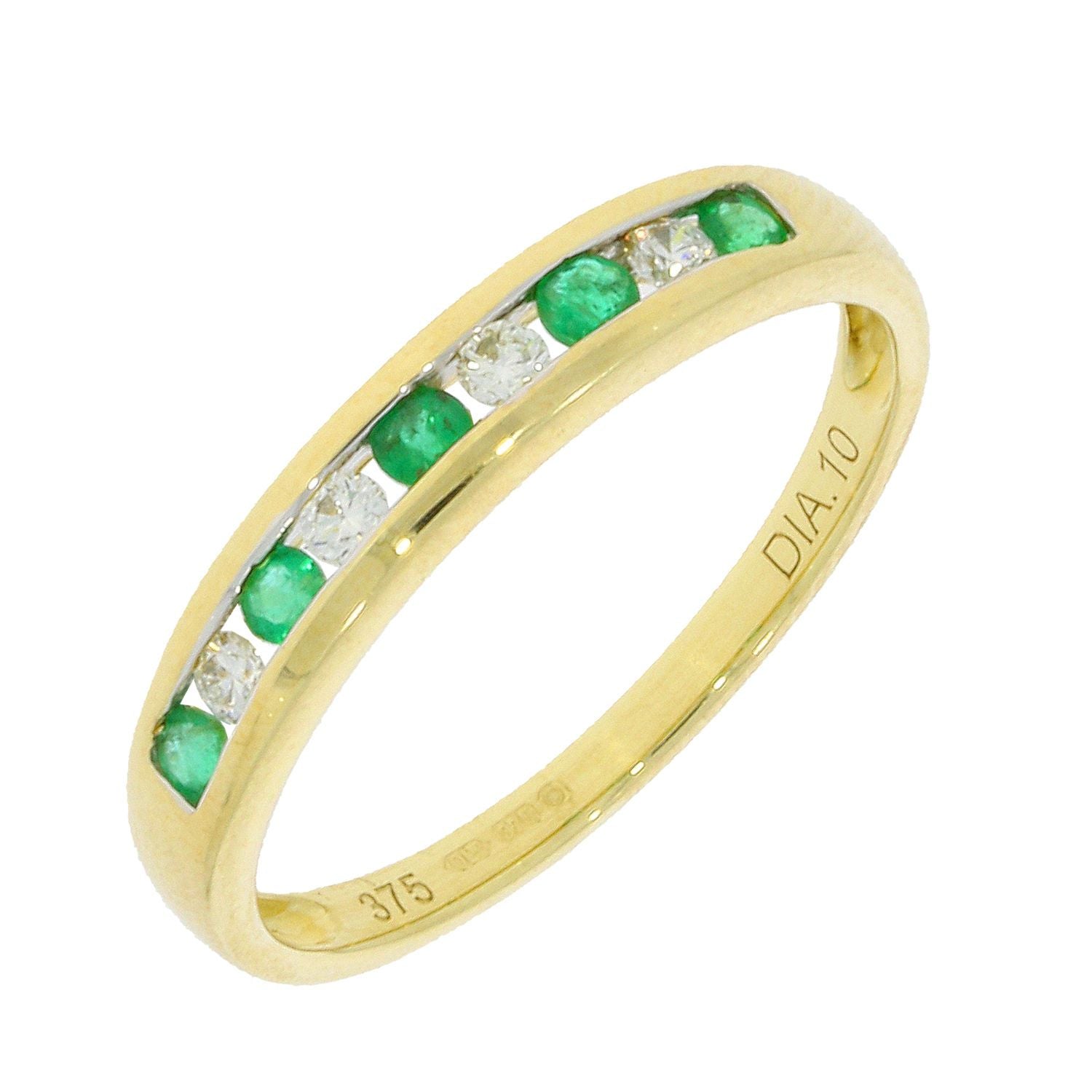 9ct Yellow Gold Emerald & 0.10ct Diamond Eternity Ring N