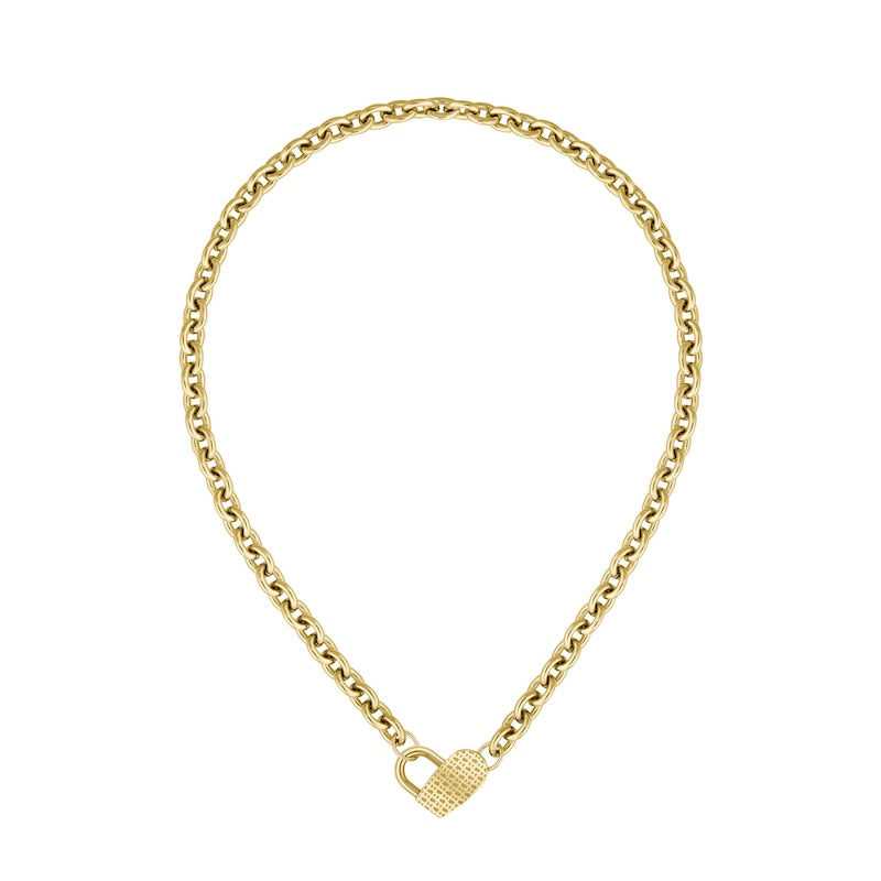 Dinya Gold Tone Monogram Lock Heart Chain Necklace