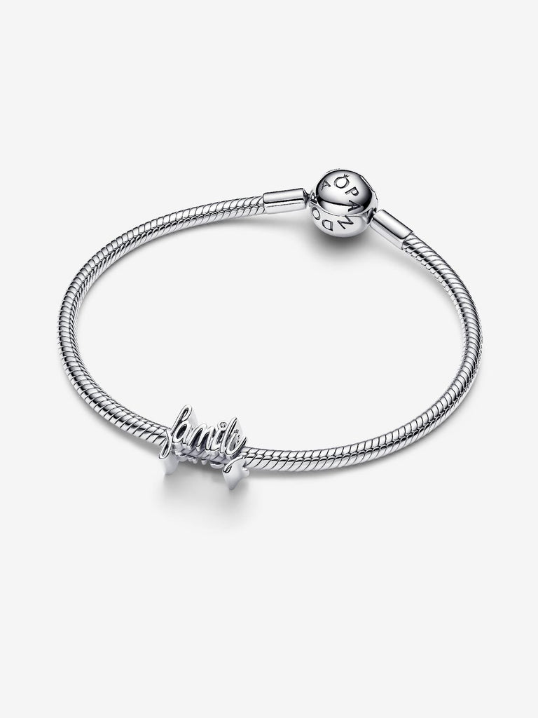 A shining reminder of what matters most. This sterling silver charm features a handwritten 'family' script with a cubic zirconia dot over the ‘i'. Expertly crafted, it’s a timeless tribute to the heart of every story.
